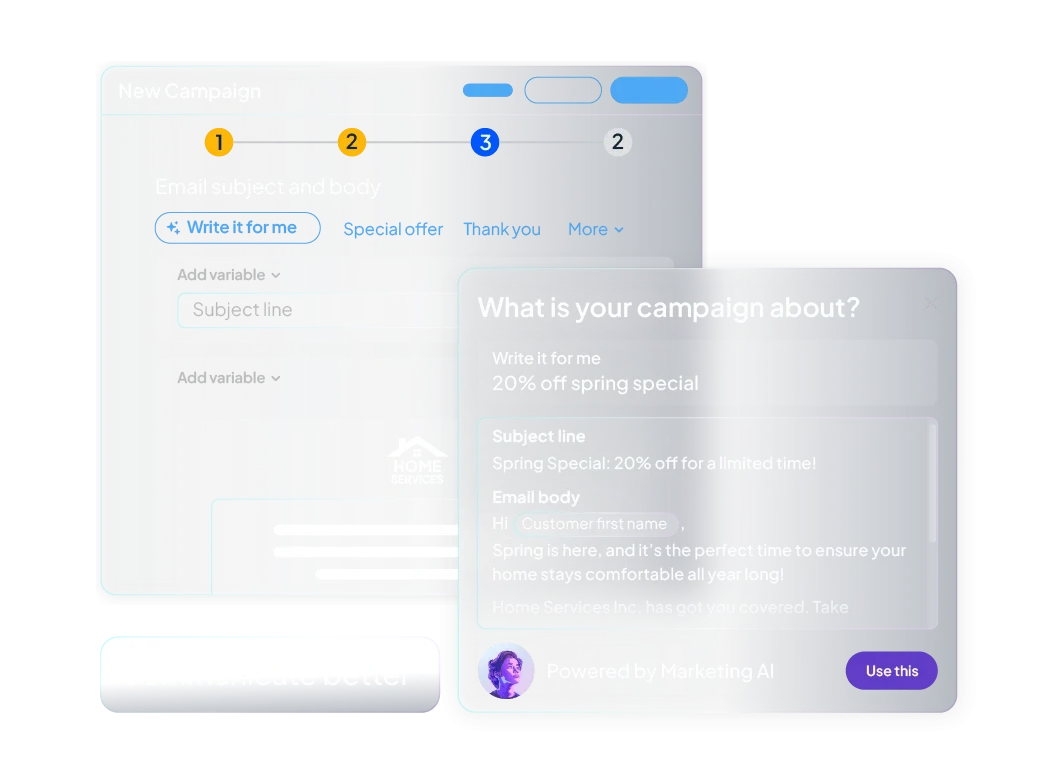 Marketing AI generates copy for emails, service descriptions, and campaigns to help you reach more customers.