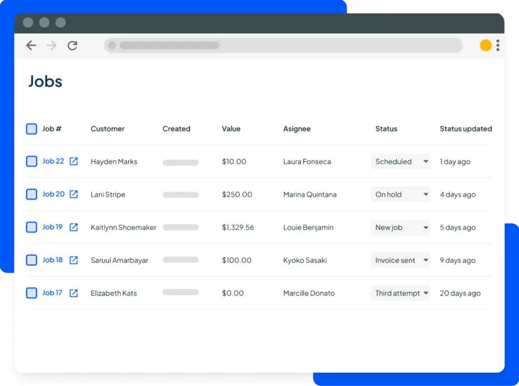 Build clear quotes with photos and line items. When a customer approves, you can schedule the job and track it to completion.