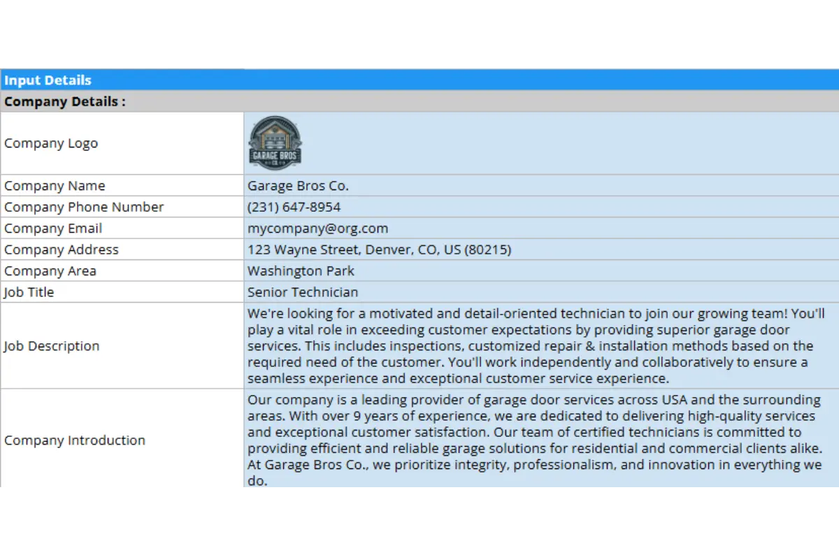 This garage door job description template is a quick and easy way to make job descriptions, save time and ensure consistency.