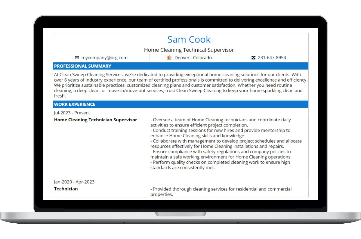 Our home cleaning resume template features: