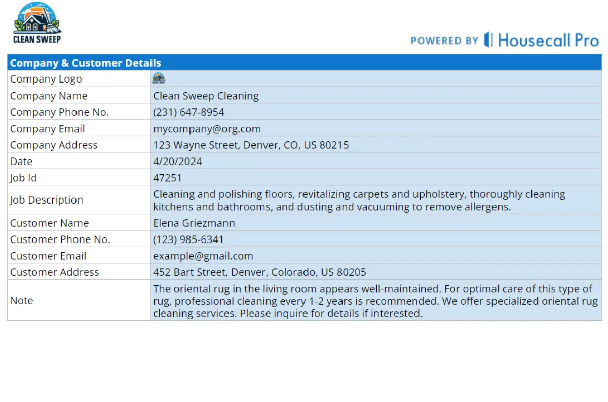 Creating accurate and thorough service report is essential for any home cleaning company. Having a simple, straightforward service report template makes it a whole lot easier.