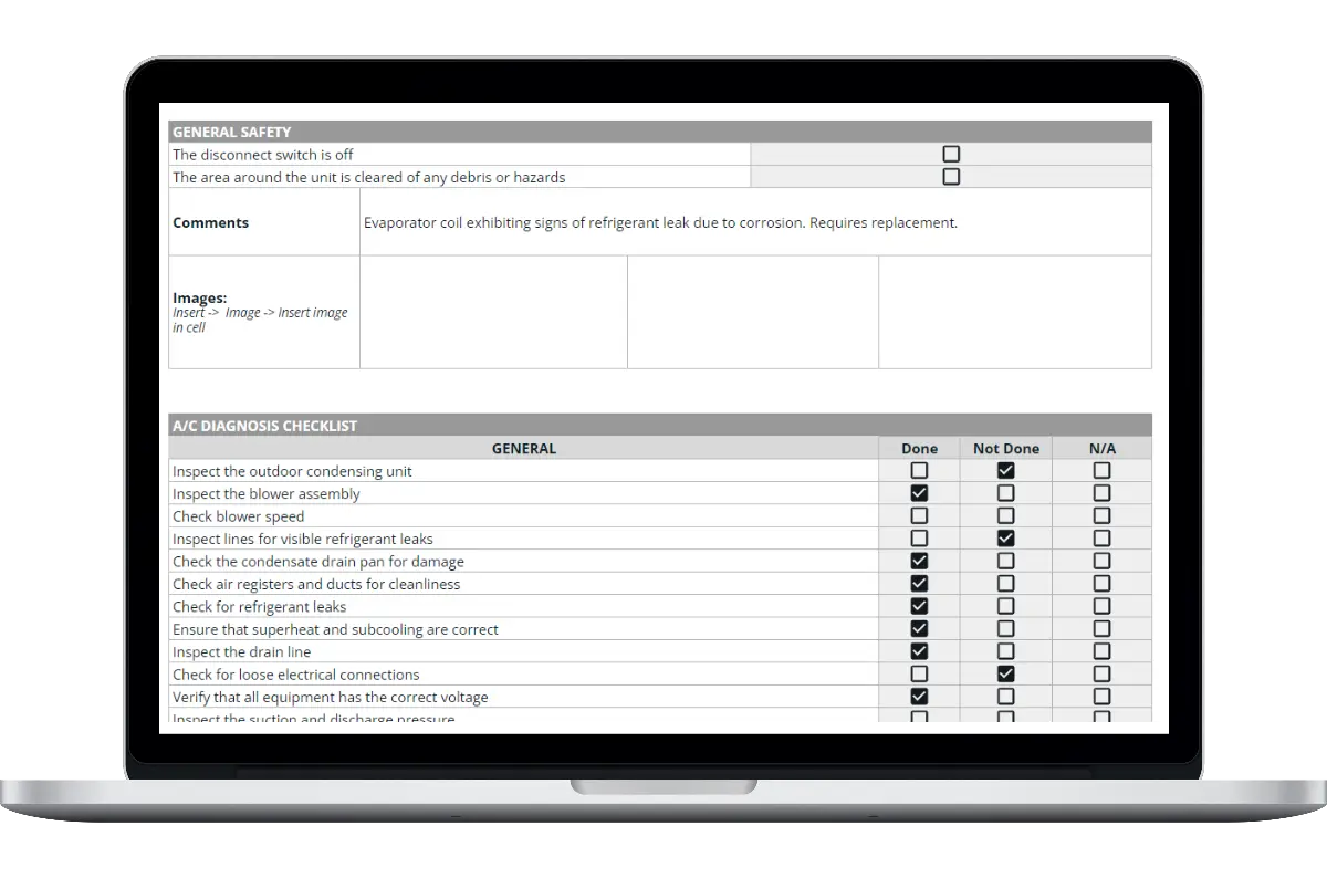 Creating accurate and thorough diagnostic checklist is essential for any HVAC company. Having a simple, straightforward diagnostic checklist template makes it a whole lot easier. Our checklist template features: