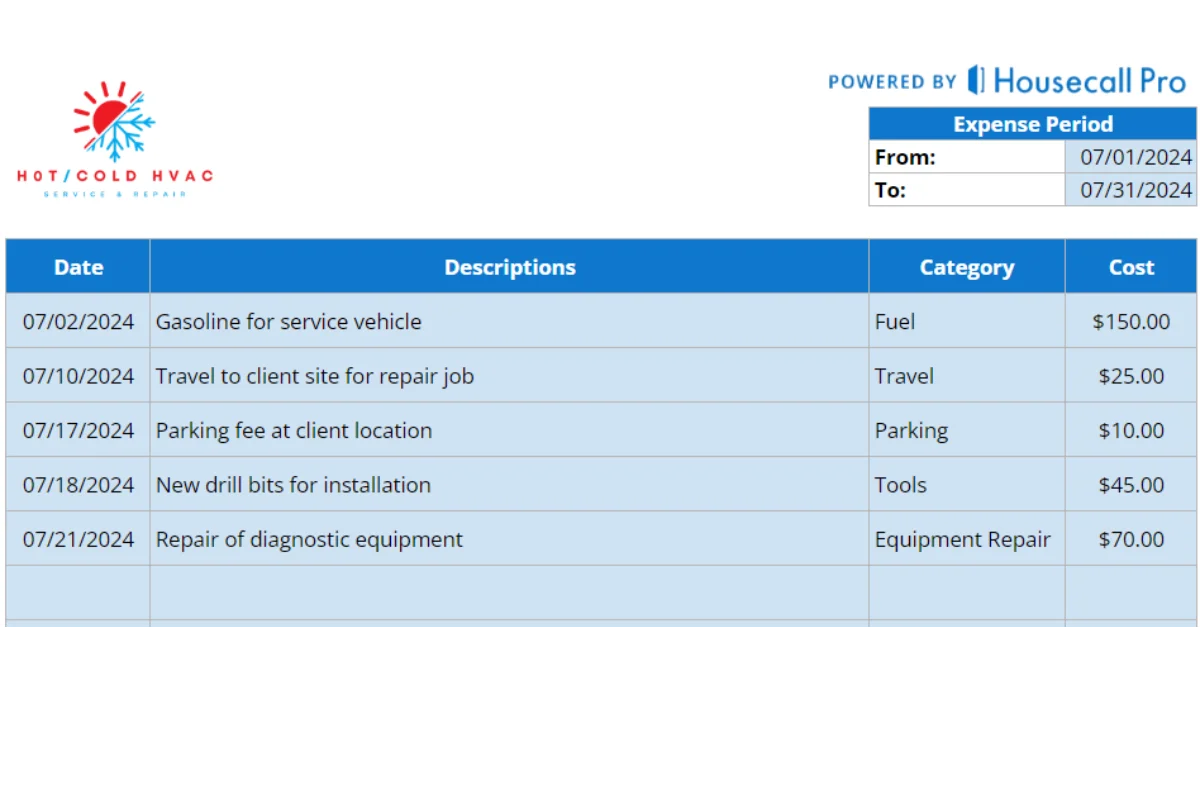 Built for Pros: Free HVAC Expense Reimbursement template from Housecall Pro