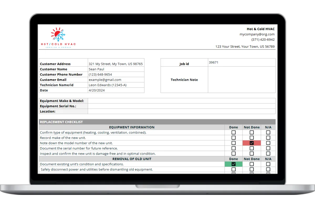 Creating accurate and thorough replacement checklist is essential for any HVAC company. Having a simple, straightforward replacement checklist template makes it a whole lot easier.
