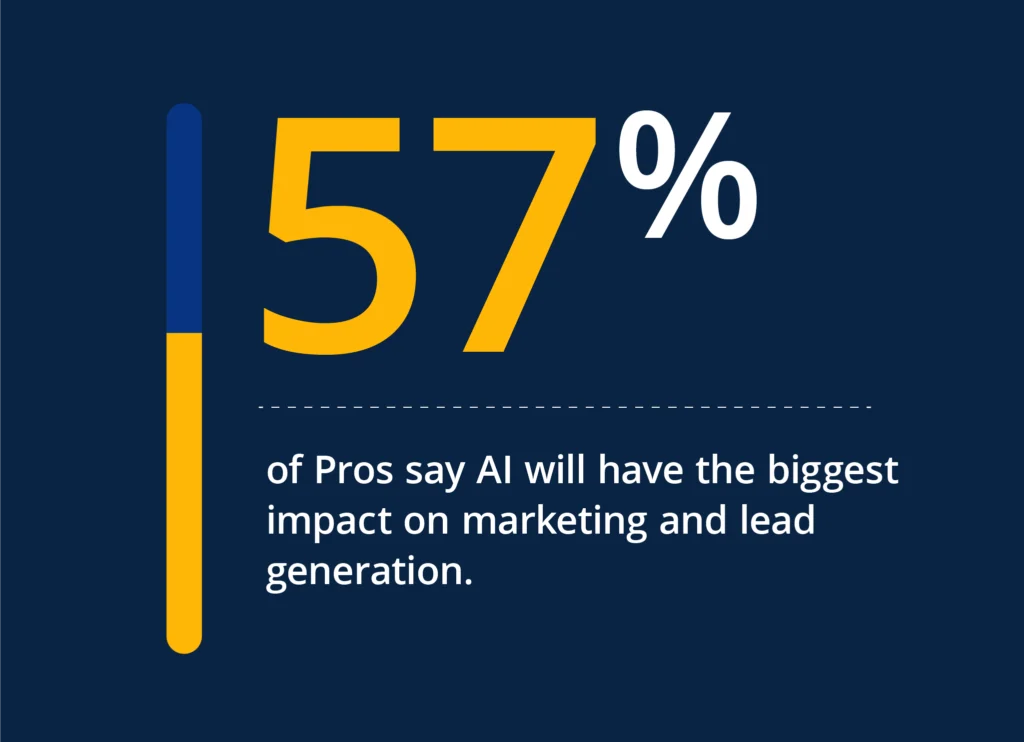 Looking ahead, 57% of Pros believe AI-powered marketing and lead generation will have the biggest impact on their business in the next five years. Other major trends include: