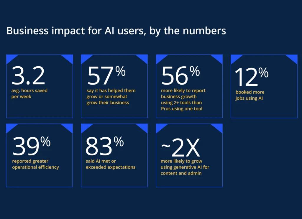 Looking ahead, the home services industry will continue to embrace AI. Our report highlights AI’s real-world benefits, including an average time saving of 3.2 hours per week and more than 50% of users reporting it’s helped them grow or somewhat grow their business. Businesses that streamline quoting, scheduling, marketing, and payments into one seamless flow will stand out where it counts. AI is the assistant. The Pro is still the boss. And that’s the dynamic building the shop of tomorrow.