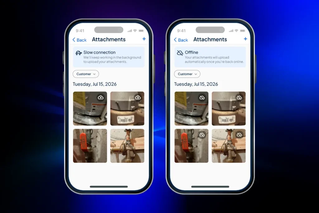 With automatic photo upload retries, mobile users no longer have to worry about failed uploads in low-service areas. If a photo doesn’t upload right away, the Housecall Pro mobile app automatically retries when a stronger signal is available—so job documentation stays complete.