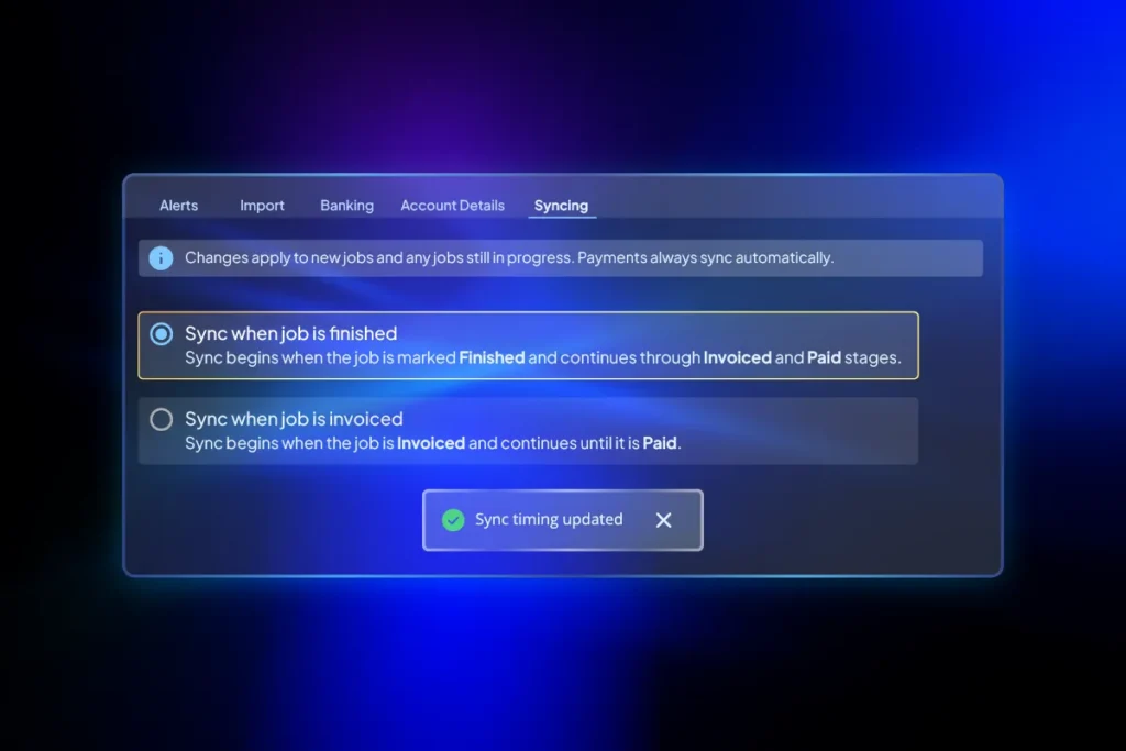 With updated QuickBooks Online sync controls, you decide when Housecall Pro data syncs to your accounting system. Choose to sync when a job is finished or when an invoice status is applied—so your books match how your business actually runs.