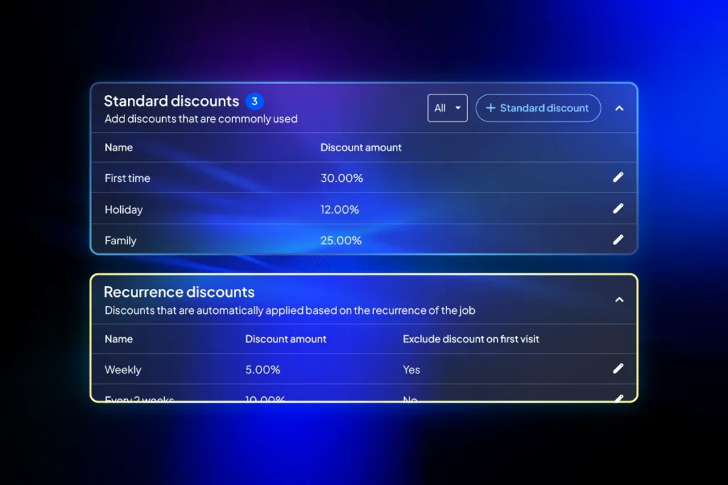 With new Recurring Discounts in Price Book, you can apply automatic discounts to recurring appointments. Encourage repeat business, strengthen customer loyalty, and boost your revenue potential, all while reducing manual work for you.